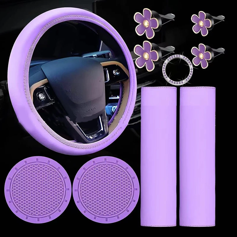 Special Features: 10Pcs Leather Steering Wheel Cover Set