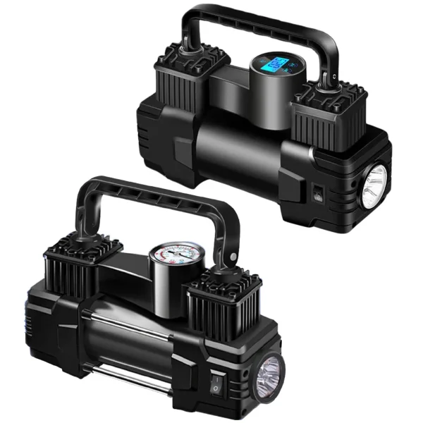 12V 150PSI Auto Inflatable Pump with Pressure Gauge Heavy Duty Deluxe Portable Metal Air Compressor Dual Cylinder with LED Light