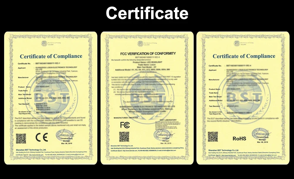 Certification: E-Mark,CE,FCC,RoHS