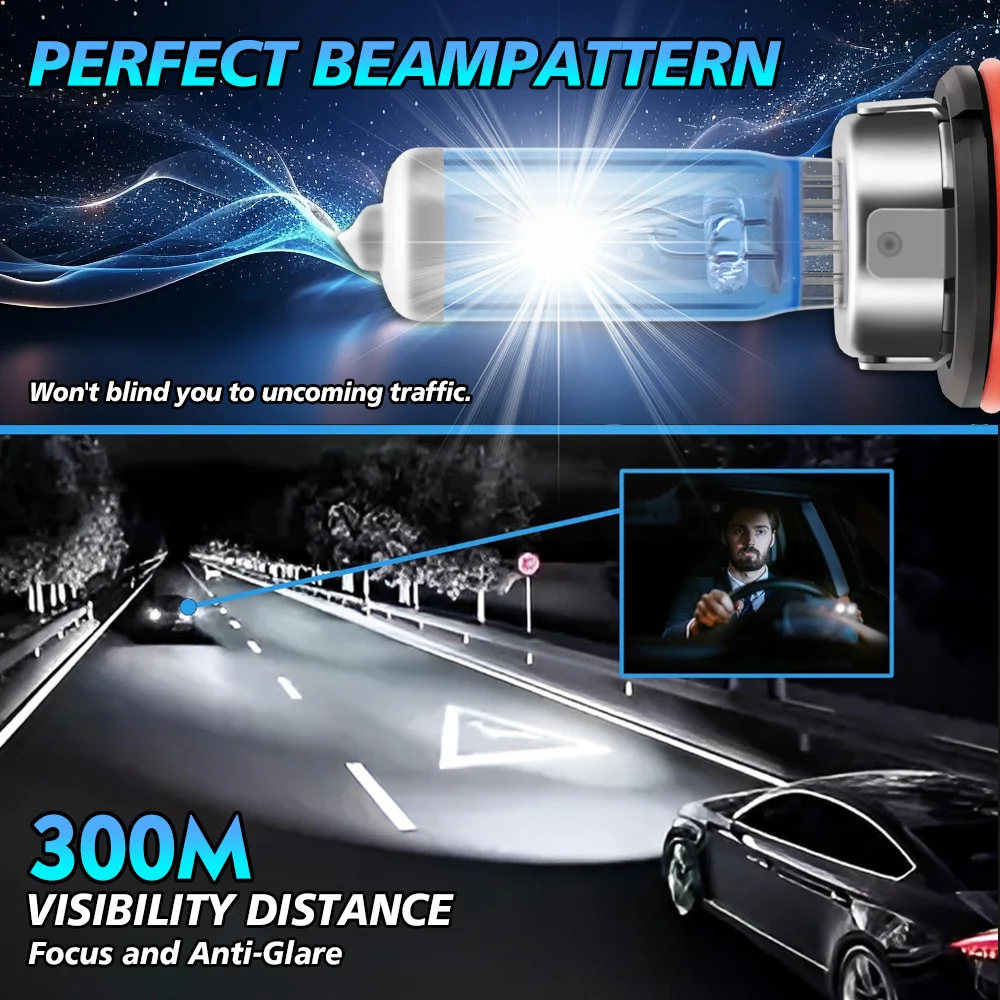 ✔ 900% Super Bright & Far Visibility: 50000LM flux + 6000K super white light (aided by xenon gas membrane) delivers 900% brightness vs. old halogens, 300M long-distance visibility for safe night driving.
