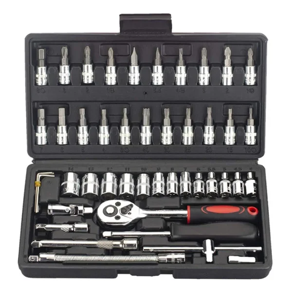 46 PCS 1/4 Inch Drive Socket Ratchet Wrench Set with Bit Socket and Extension Bar for Auto Repair Metric Tools