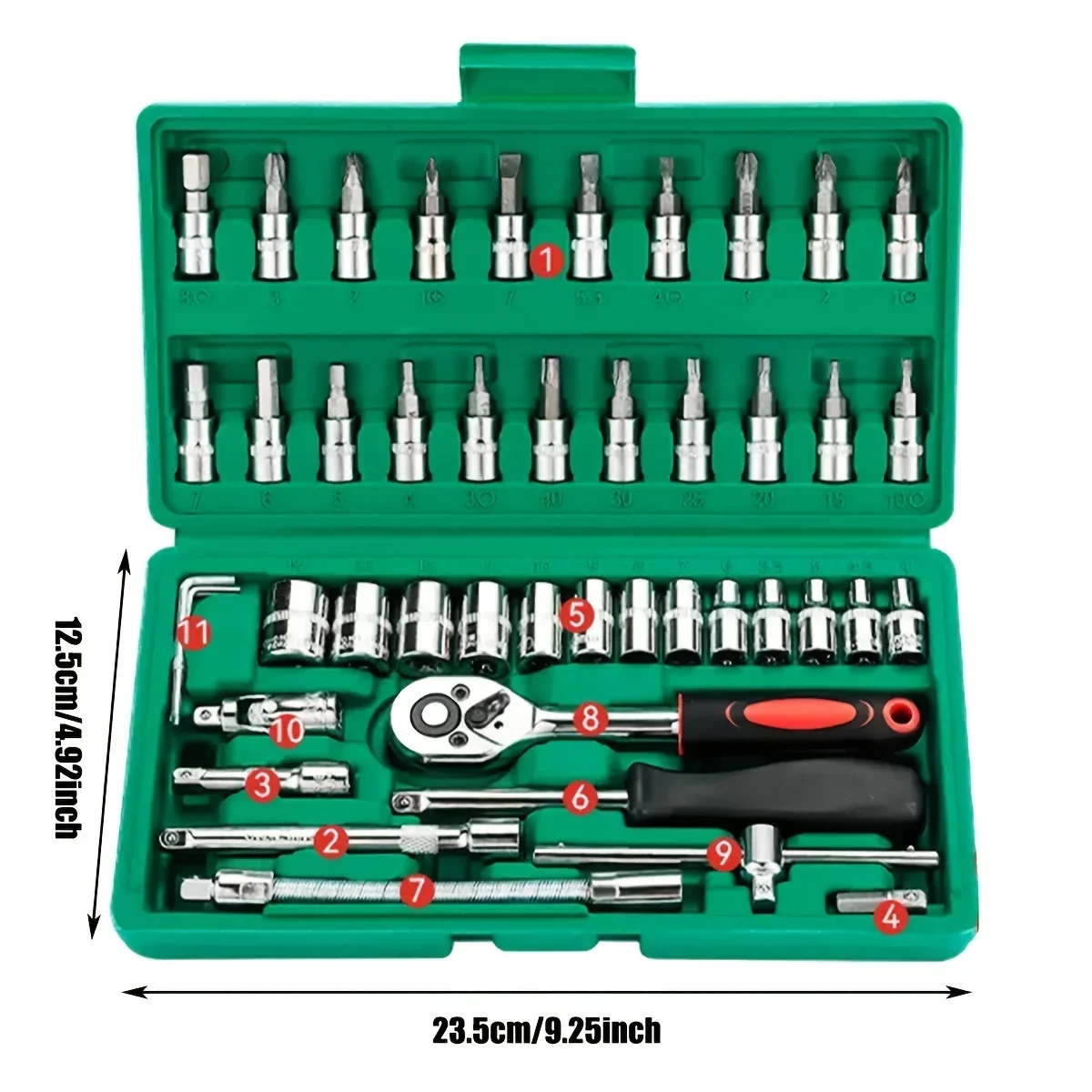 Easy Usage and Storage: A newly designed sturdy blow molded, moisture resistant toolbox is included with designated slots and imprinted sizes for every socket and accessories.Quick release switch and reversible mechanism for easy operation; ts sturdy blow molded toolbox makes the sockets easy to store and carry.