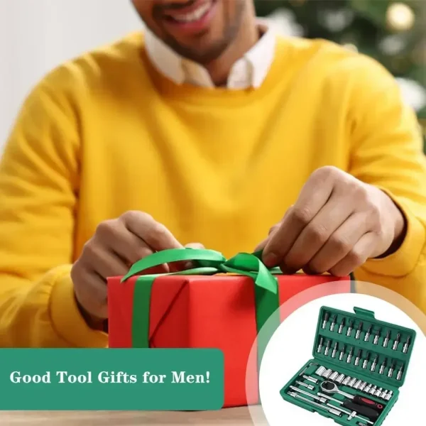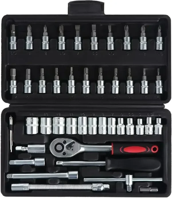 A comprehensive tool solution designed specifically for automotive repair and maintenance scenarios. The set includes 46 core tools such as multi specification sockets, professional ratchet wrenches, flexible connecting rods, universal joints, and multifunctional batch heads. The tools are forged from high hardness chrome vanadium steel and undergo precision heat treatment and chrome anti rust process. They are wear-resistant, impact resistant, corrosion-resistant, and rust resistant, and can withstand high torque operations with stable long-term performance. Paired with a storage toolbox, each tool is precisely positioned and clearly classified, ensuring stability and stability when carried and clear visibility when stored, making auto repair operations efficient and orderly