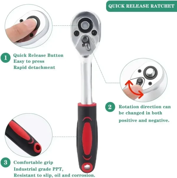 1. Covering components such as sockets, ratchet wrenches, connecting rods, batch heads, universal joints, etc., it is suitable for various needs such as automotive repair, maintenance, and modification, bidding farewell to the problem of tool shortage.