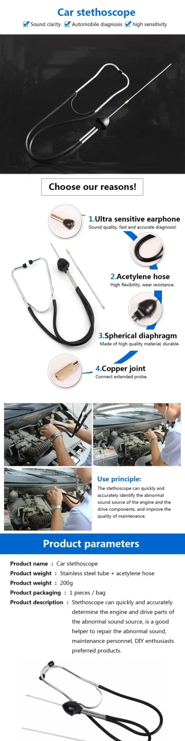 Function: Car Cylinder Stethoscope