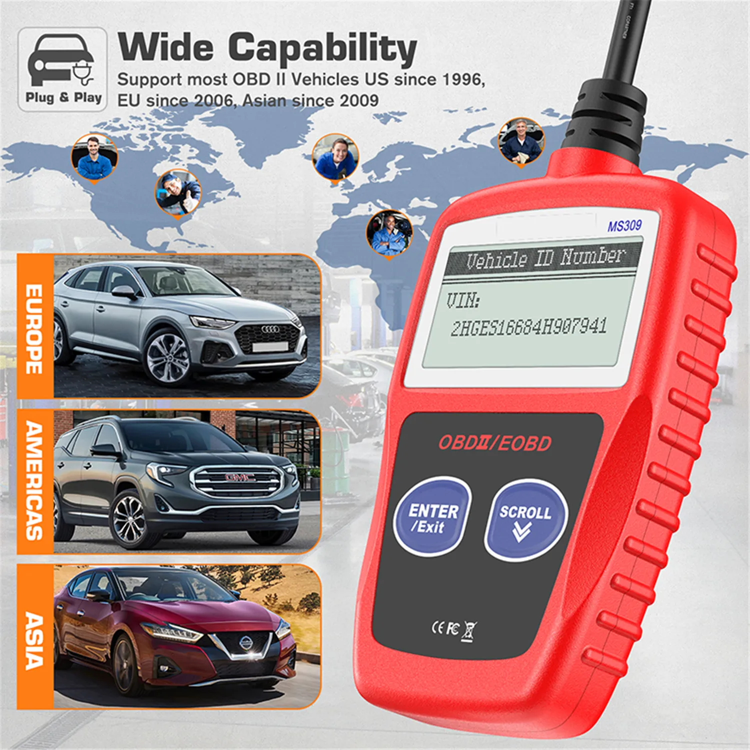 Works with all 1996 and later OBDII compliant US, European and Asian vehicles