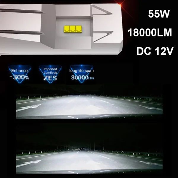 Car LED Bulb 12V 55W 60/55W 18000LM High Beam Low Beam Motorcycle Headlight