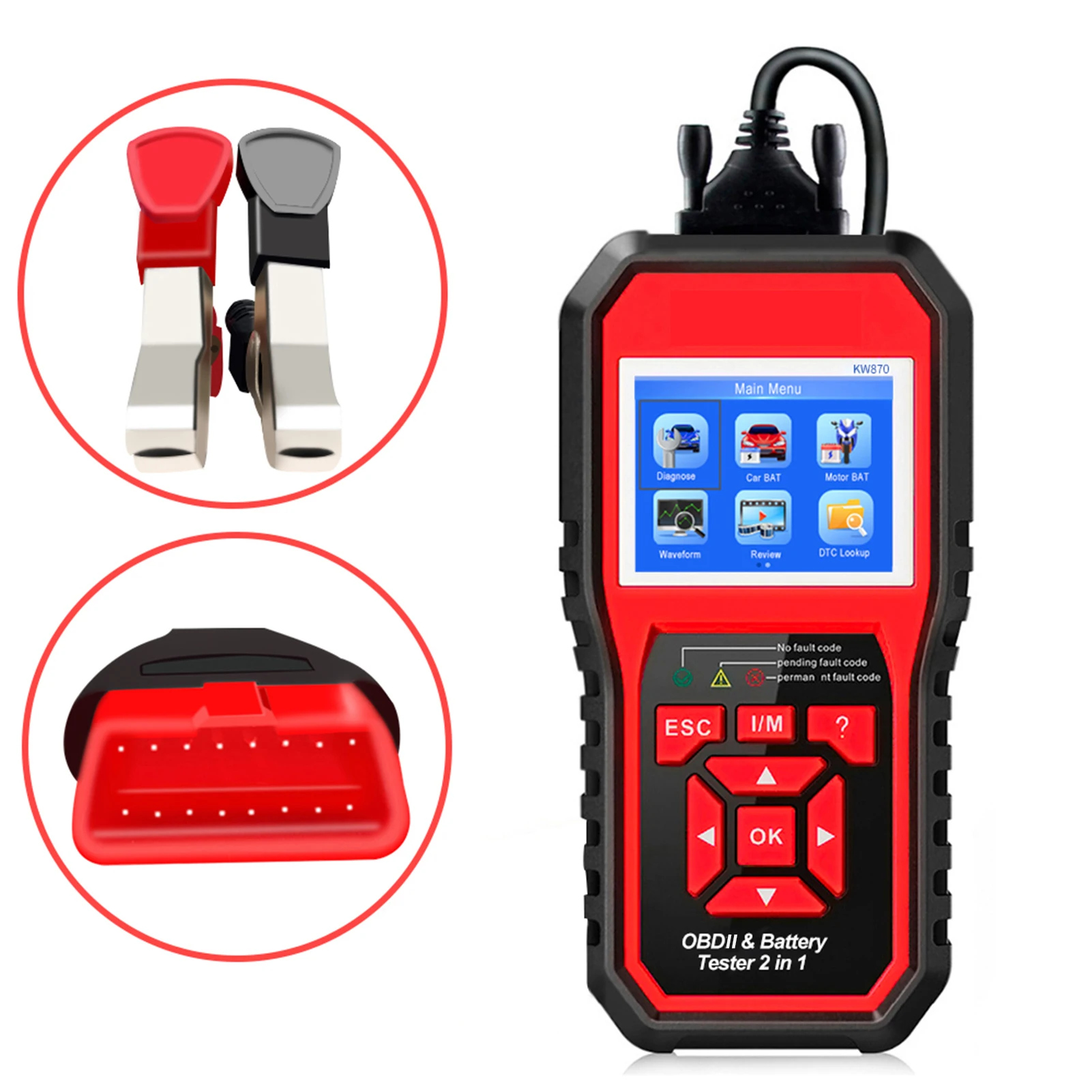 KONNWEI OBDII Auto Diagnostic Code Scanner (KW870) Universal Car Battery Tester 2 in 1 Auto Diagnostic Scan Tools: