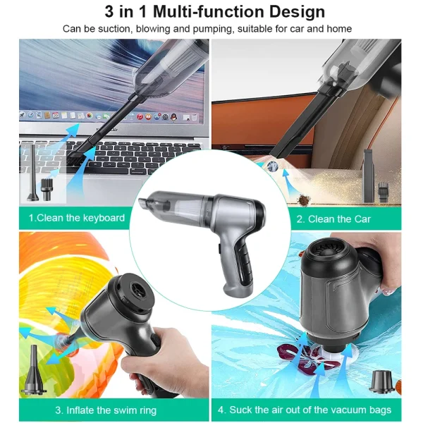 [Product functions]: Mainly cleaning cars, vacuuming, blowing dust, blowing balloons and so on.