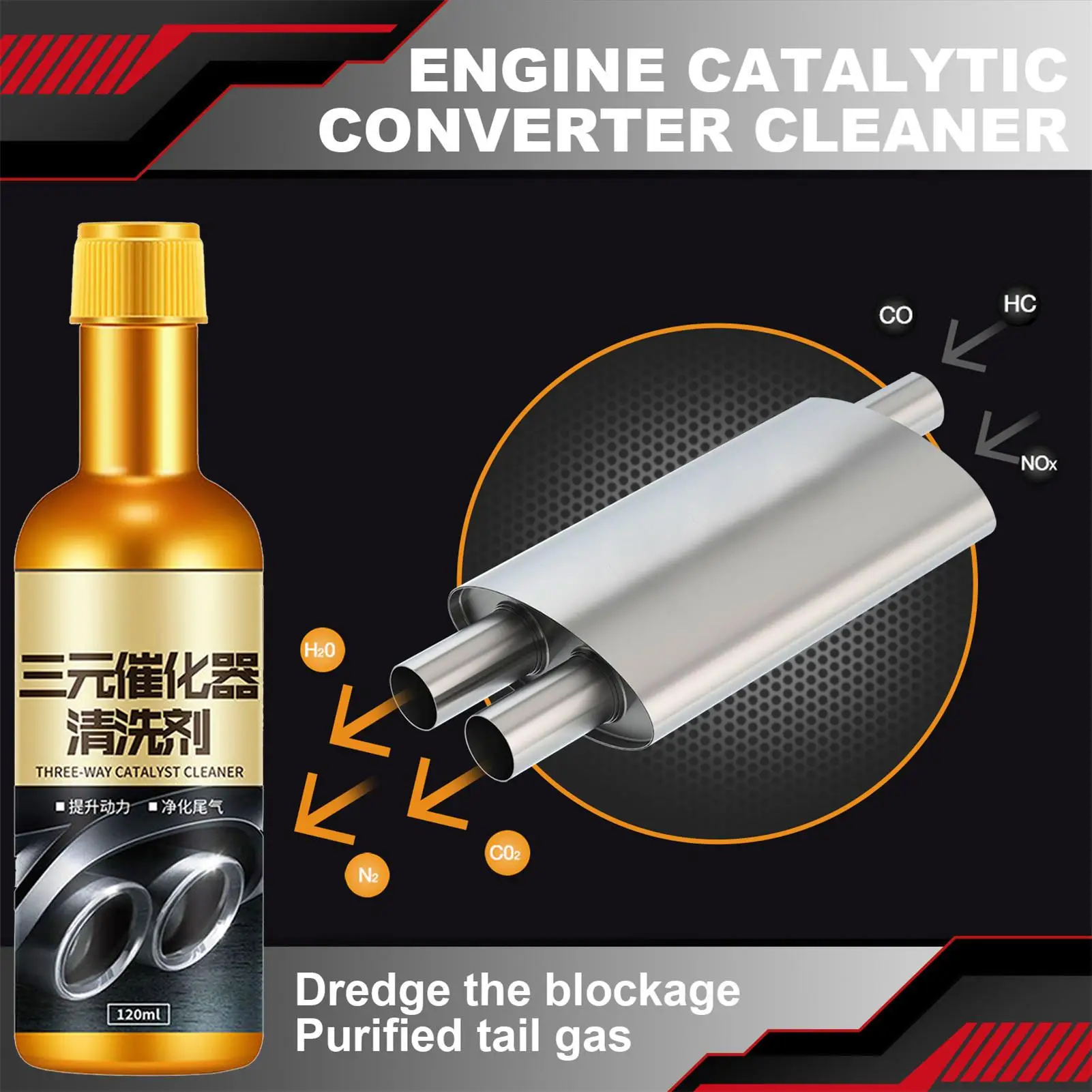Product efficacy: This product can remove compounds adsorbed on the surface of the three-way catalytic converter, improve the purification efficiency of the three-way catalytic converter, reduce exhaust emissions, increase engine power, accelerate the engine, and reduce oil consumption.