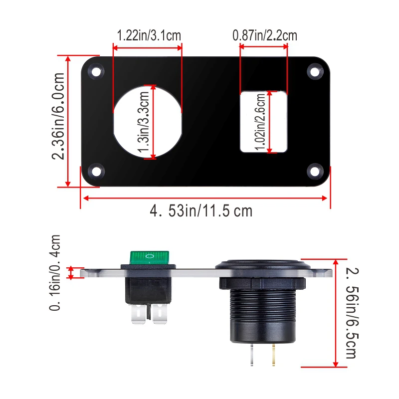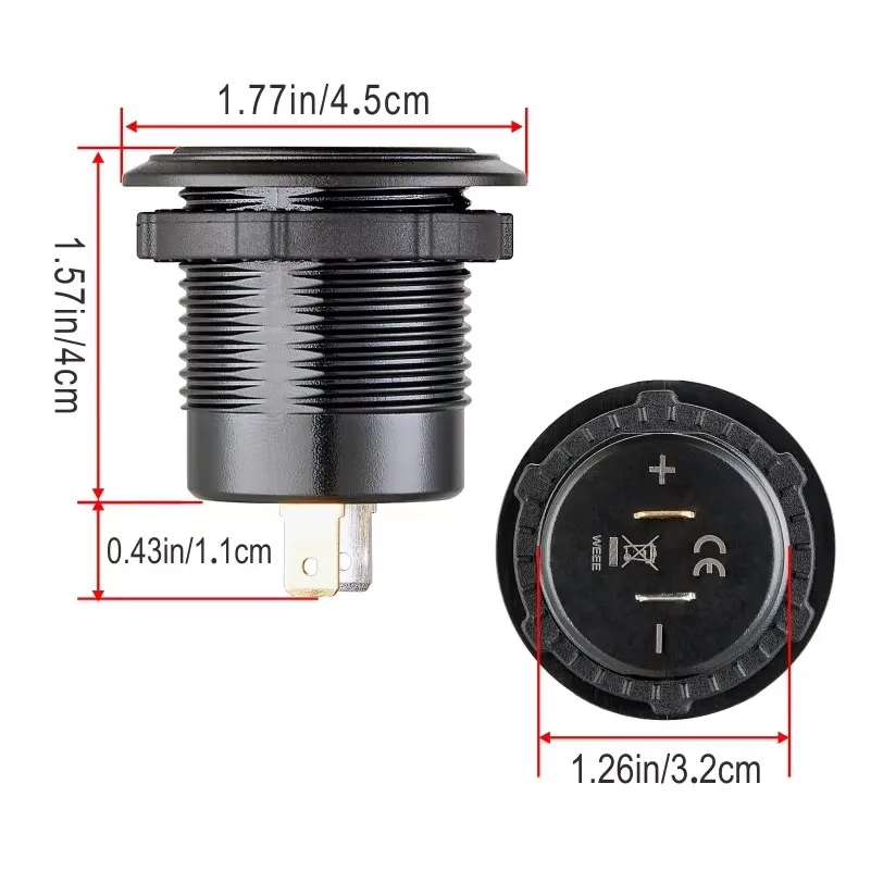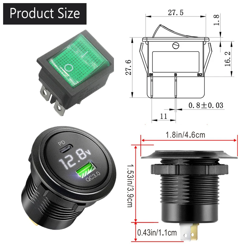Model Name: 12V/24V QC3.0 Power Adapter Modified Outlet With On/off button