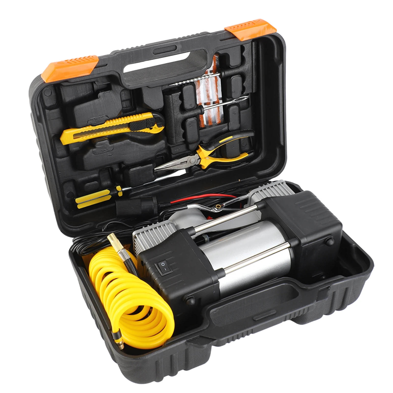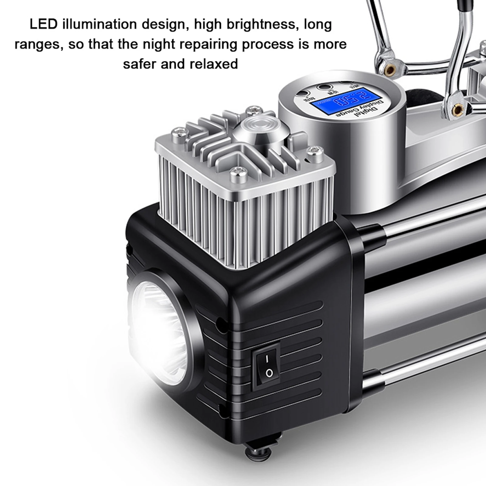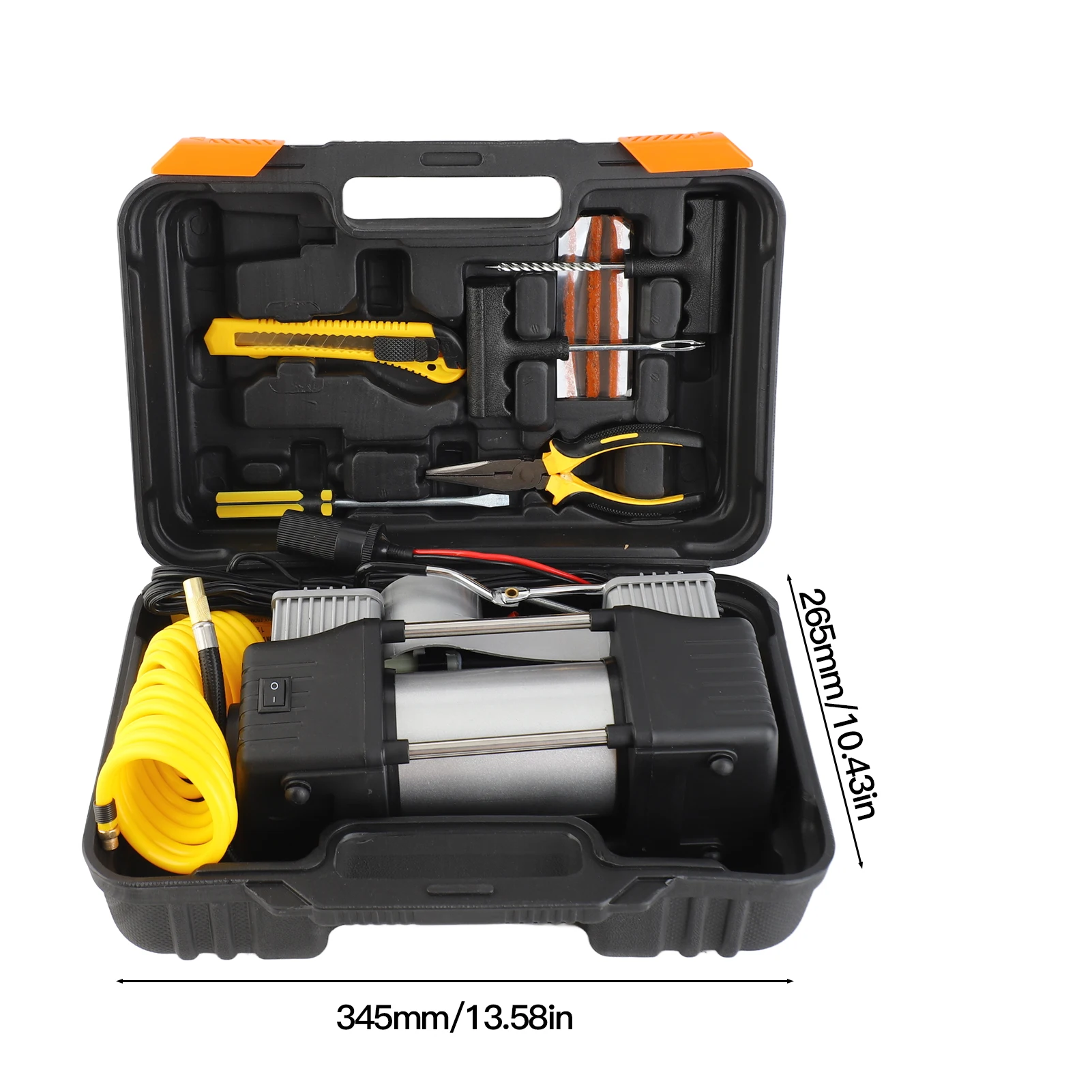 9. 3 meters cigar lighter connection cable, can be easily extended to 4 tires, simple and convenient inflation.