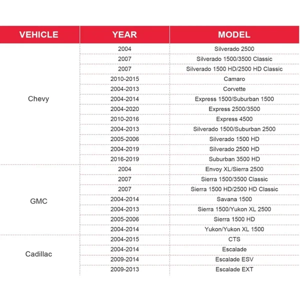 Model Name: H2 LMG 5(325CUV8) LC9 LS1 LS2 LS3 LM7 LY5 L99 LY5 L96 LQ4 L96 LS3
