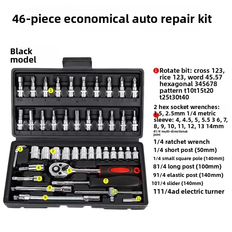 სპეციფიკაციები დანიშნულება: ავტომობილის შეკეთების ხელსაწყო; ელემენტი: არა; ბრენდი: არა; ხელნაკეთი ნივთების მარაგი: ხის დამუშავება; მაღალი შეშფოთების ქიმიური ნივთიერება: არა; მოდელის ნომერი: 12/46/53; წარმოშობა: ჩინეთის მატერიკი, ჩინეთის მატერიკი; შესაფერისია: ლითონის ავტომობილის შეკეთების ხელსაწყოების ნაკრები, 46 ცალი/კომპლექტი; ბუდეების ნაკრები, ავტომობილის შეკეთების ხელსაწყოების ჭანჭიკი, ბრუნვის მომენტის გასაღების კომბინაცია; ავტომობილის შეკეთების ხელსაწყოების ნაკრები, 46 ცალი ავტომობილის შეკეთების ხელსაწყოების ნაკრები: ეს ნაკრები მოიცავს 46 აუცილებელ ხელსაწყოს ავტომობილის შესაკეთებლად, რაც მას თქვენი ყველა ავტომობილისთვის ყოვლისმომცველ გადაწყვეტად აქცევს