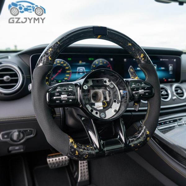 Mercedes-Benz AMG 809 W206 S206 S213-ისთვის ნახშირბადის LED ბრტყელი სარბოლო საჭე ნახშირბადის ბოჭკოვანი ტყავის გრძელი ფირფიტებით