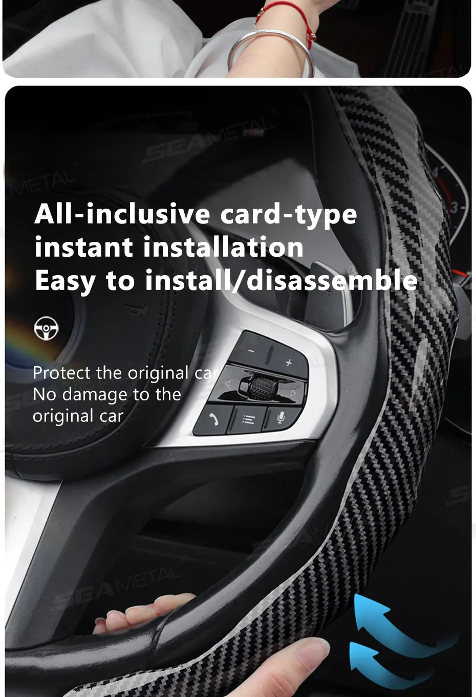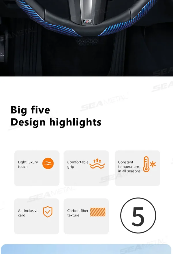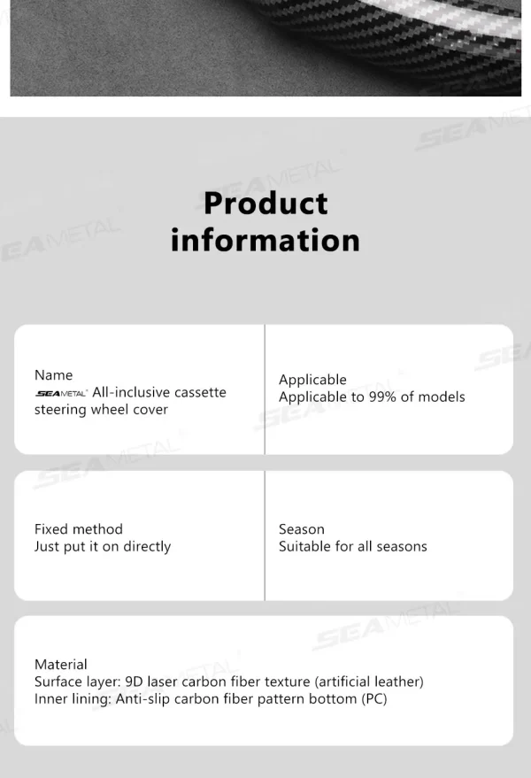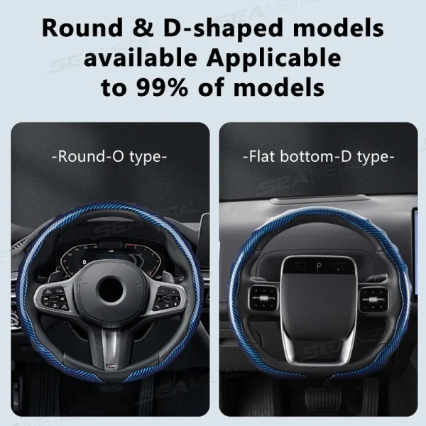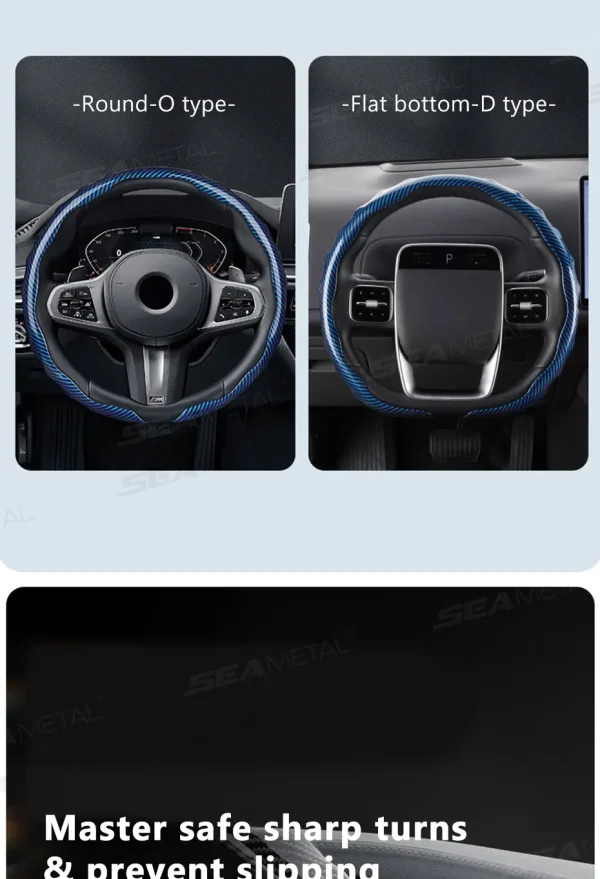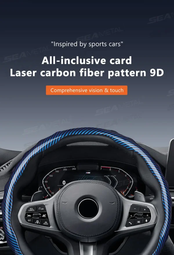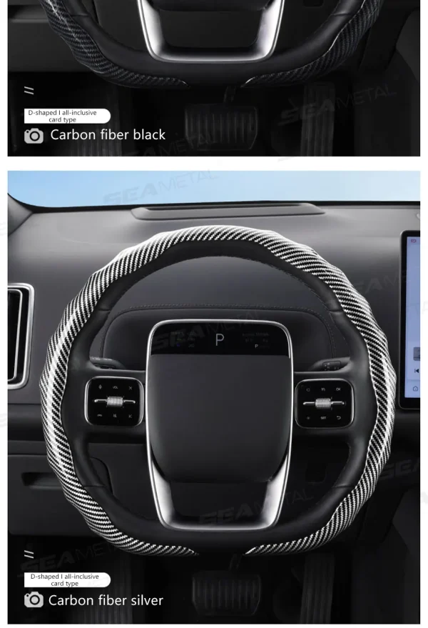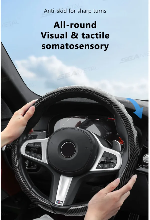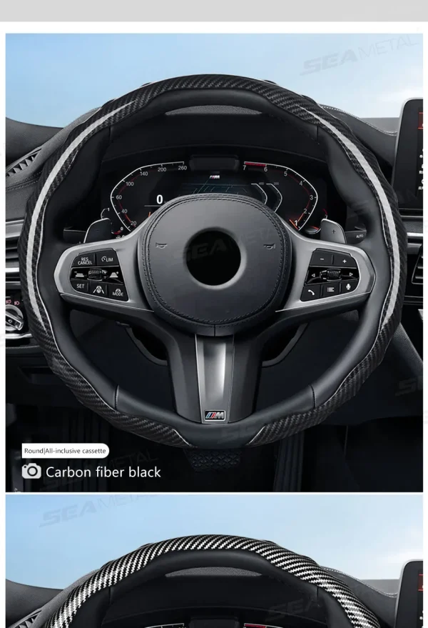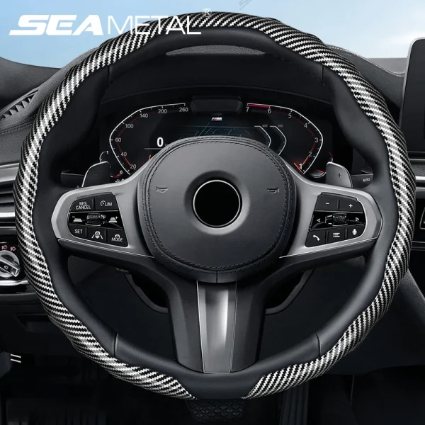SEAMETAL Carbon Fiber Steering Wheel Cover Non-Slip Car Steer Wheel Anti Scratch Steering Protection Cover Universal for 37-39cm